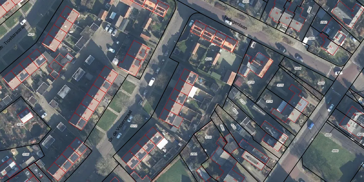 Het perceel waarop Dr. de Visserstraat 20 staat heeft een oppervlakte van 2900 m². Dit is een zeer groot perceel. De perceeloppervlakte wordt geregistreerd door het Kadaster. Gedetailleerde informatie over de maten van dit perceel kunt u vinden in het rapport Kadastrale kaart met maatvoering van Dr. de Visserstraat 20.