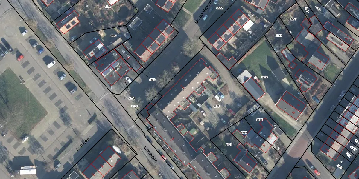 Het perceel waarop Dr. de Visserstraat 4-b staat heeft een oppervlakte van 2960 m². Dit is een zeer groot perceel. De perceeloppervlakte wordt geregistreerd door het Kadaster. Gedetailleerde informatie over de maten van dit perceel kunt u vinden in het rapport Kadastrale kaart met maatvoering van Dr. de Visserstraat 4-b.