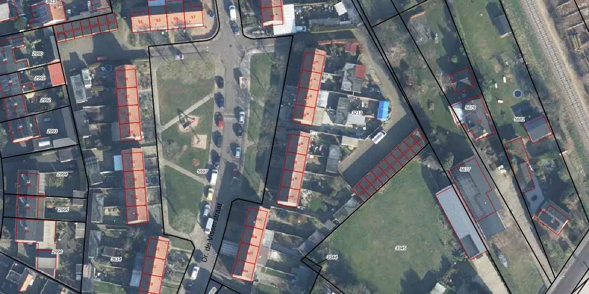 Dr. de Visserstraat 48 is gelegen op kadastraal perceel DRN00U3213. Deze kadastrale aanduiding is uniek en wordt gebruikt door het Kadaster om eigendomsrechten en andere zakelijke rechten vast te leggen. Het perceel maakt onderdeel uit van de kadastrale gemeente Dieren.