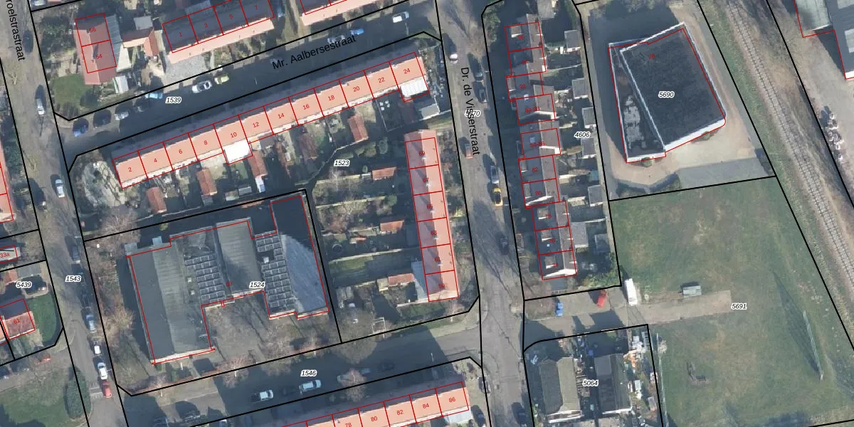 Het perceel waarop Dr. de Visserstraat 65 staat heeft een oppervlakte van 3545 m². Dit is een zeer groot perceel. De perceeloppervlakte wordt geregistreerd door het Kadaster. Gedetailleerde informatie over de maten van dit perceel kunt u vinden in het rapport Kadastrale kaart met maatvoering van Dr. de Visserstraat 65.