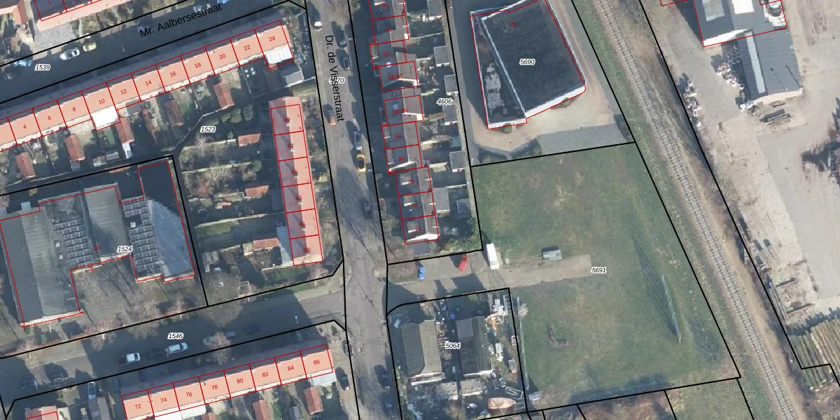 Het perceel waarop Dr. de Visserstraat 76 staat heeft een oppervlakte van 1618 m². Dit is een zeer groot perceel. De perceeloppervlakte wordt geregistreerd door het Kadaster. Gedetailleerde informatie over de maten van dit perceel kunt u vinden in het rapport Kadastrale kaart met maatvoering van Dr. de Visserstraat 76.