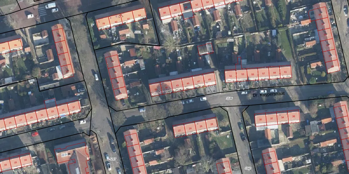 Dr. Kuyperstraat 43 is gelegen op kadastraal perceel DRN00U1512. Deze kadastrale aanduiding is uniek en wordt gebruikt door het Kadaster om eigendomsrechten en andere zakelijke rechten vast te leggen. Het perceel maakt onderdeel uit van de kadastrale gemeente Dieren.