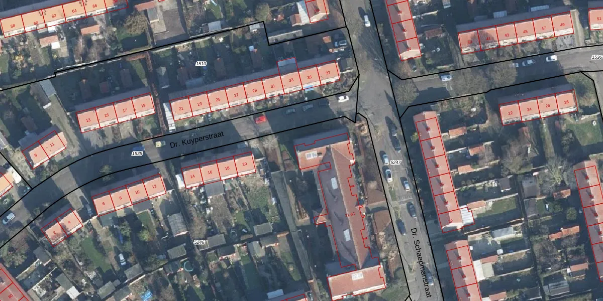 Dr. Schaepmanstraat 51 is gelegen op kadastraal perceel DRN00U5246. Deze kadastrale aanduiding is uniek en wordt gebruikt door het Kadaster om eigendomsrechten en andere zakelijke rechten vast te leggen. Het perceel maakt onderdeel uit van de kadastrale gemeente Dieren.