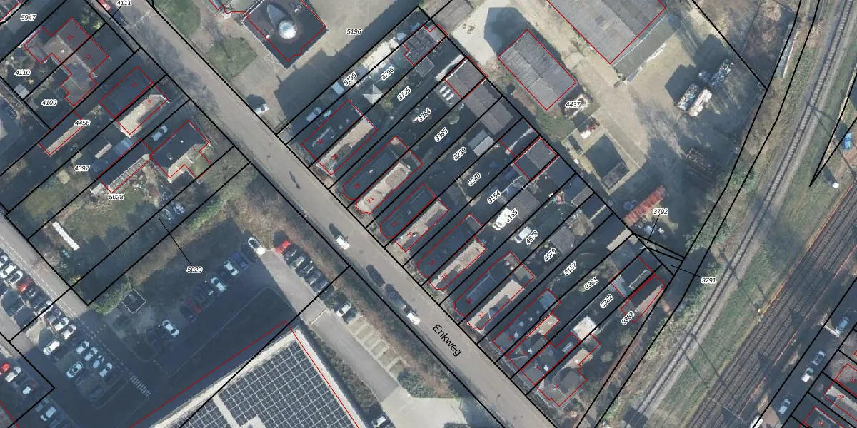 Het perceel waarop Enkweg 20 staat heeft een oppervlakte van 261 m². Dit is een middelgroot perceel. De perceeloppervlakte wordt geregistreerd door het Kadaster. Gedetailleerde informatie over de maten van dit perceel kunt u vinden in het rapport Kadastrale kaart met maatvoering van Enkweg 20.