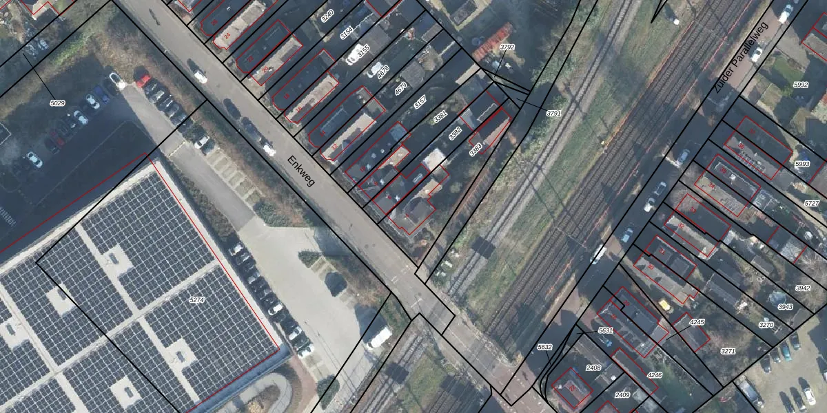 Het perceel waarop Enkweg 4 staat heeft een oppervlakte van 372 m². Dit is een groot perceel. De perceeloppervlakte wordt geregistreerd door het Kadaster. Gedetailleerde informatie over de maten van dit perceel kunt u vinden in het rapport Kadastrale kaart met maatvoering van Enkweg 4.