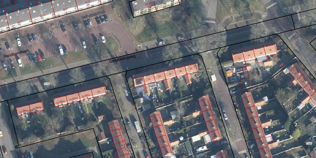 Het perceel waarop Geitenbergweg 34 staat heeft een oppervlakte van 9490 m². Dit is een zeer groot perceel. De perceeloppervlakte wordt geregistreerd door het Kadaster. Gedetailleerde informatie over de maten van dit perceel kunt u vinden in het rapport Kadastrale kaart met maatvoering van Geitenbergweg 34.