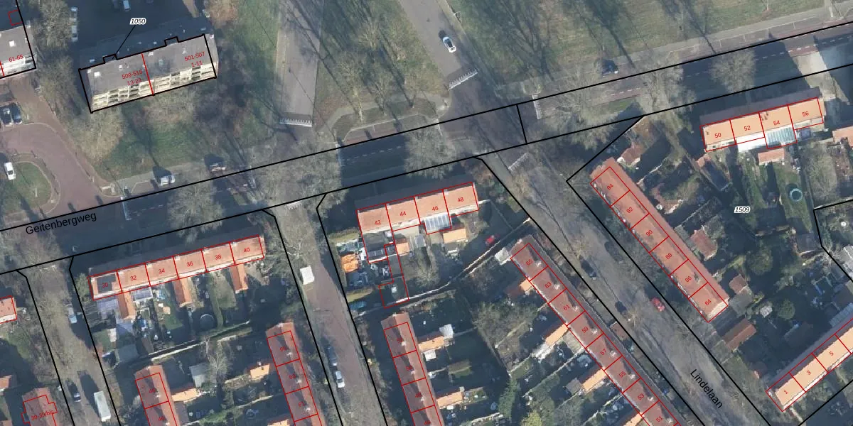 Het perceel waarop Geitenbergweg 46 staat heeft een oppervlakte van 7925 m². Dit is een zeer groot perceel. De perceeloppervlakte wordt geregistreerd door het Kadaster. Gedetailleerde informatie over de maten van dit perceel kunt u vinden in het rapport Kadastrale kaart met maatvoering van Geitenbergweg 46.