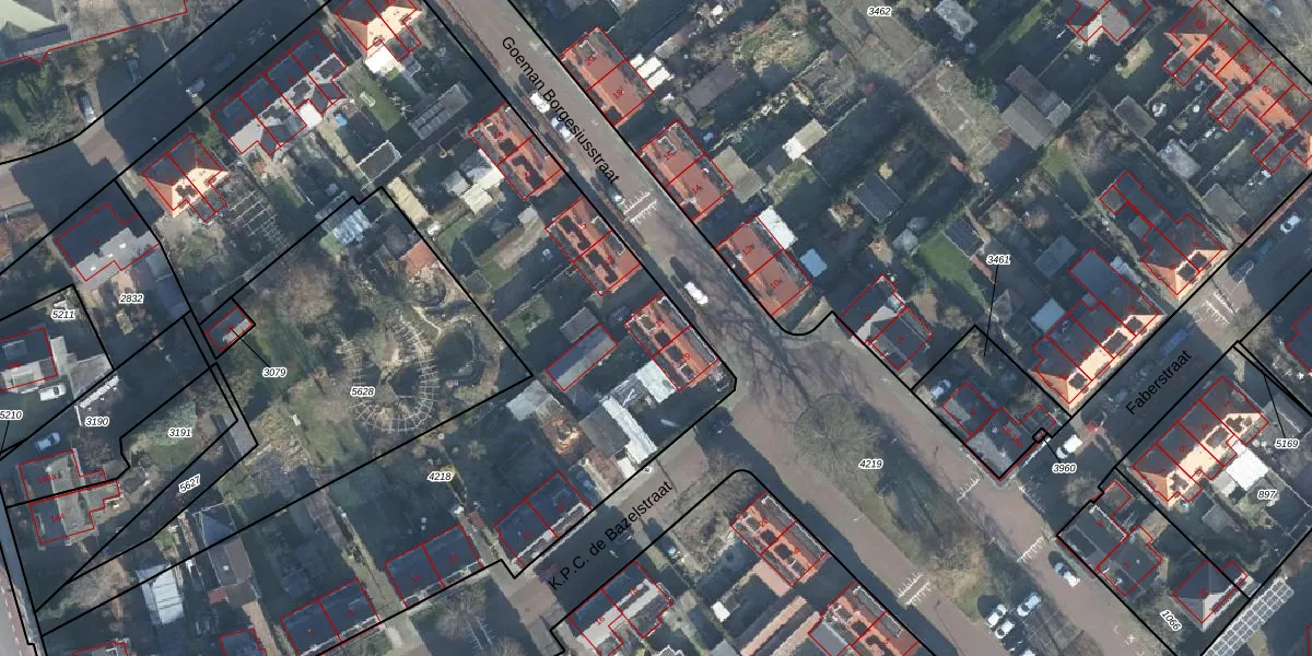Het perceel waarop Goeman Borgesiusstraat 11 staat heeft een oppervlakte van 4816 m². Dit is een zeer groot perceel. De perceeloppervlakte wordt geregistreerd door het Kadaster. Gedetailleerde informatie over de maten van dit perceel kunt u vinden in het rapport Kadastrale kaart met maatvoering van Goeman Borgesiusstraat 11.