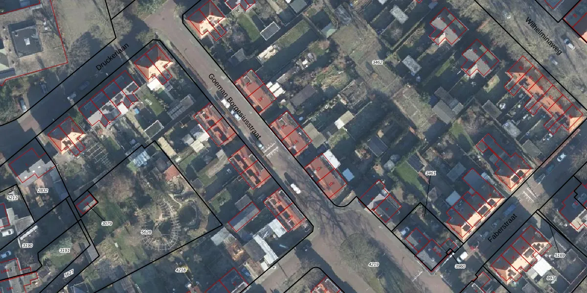 Het perceel waarop Goeman Borgesiusstraat 14 staat heeft een oppervlakte van 9101 m². Dit is een zeer groot perceel. De perceeloppervlakte wordt geregistreerd door het Kadaster. Gedetailleerde informatie over de maten van dit perceel kunt u vinden in het rapport Kadastrale kaart met maatvoering van Goeman Borgesiusstraat 14.