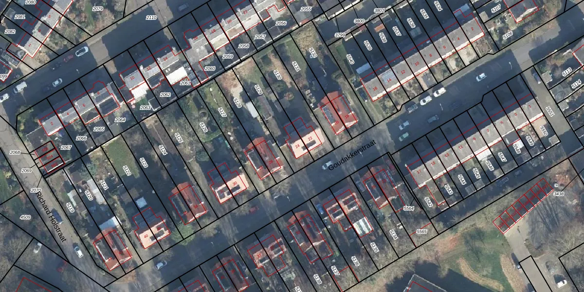 Het perceel waarop Goudakkerstraat 24 staat heeft een oppervlakte van 339 m². Dit is een groot perceel. De perceeloppervlakte wordt geregistreerd door het Kadaster. Gedetailleerde informatie over de maten van dit perceel kunt u vinden in het rapport Kadastrale kaart met maatvoering van Goudakkerstraat 24.