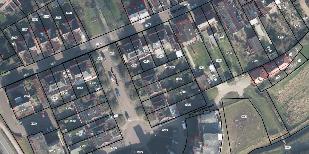 Het perceel waarop Het Bastion 1 staat heeft een oppervlakte van 330 m². Dit is een groot perceel. De perceeloppervlakte wordt geregistreerd door het Kadaster. Gedetailleerde informatie over de maten van dit perceel kunt u vinden in het rapport Kadastrale kaart met maatvoering van Het Bastion 1.