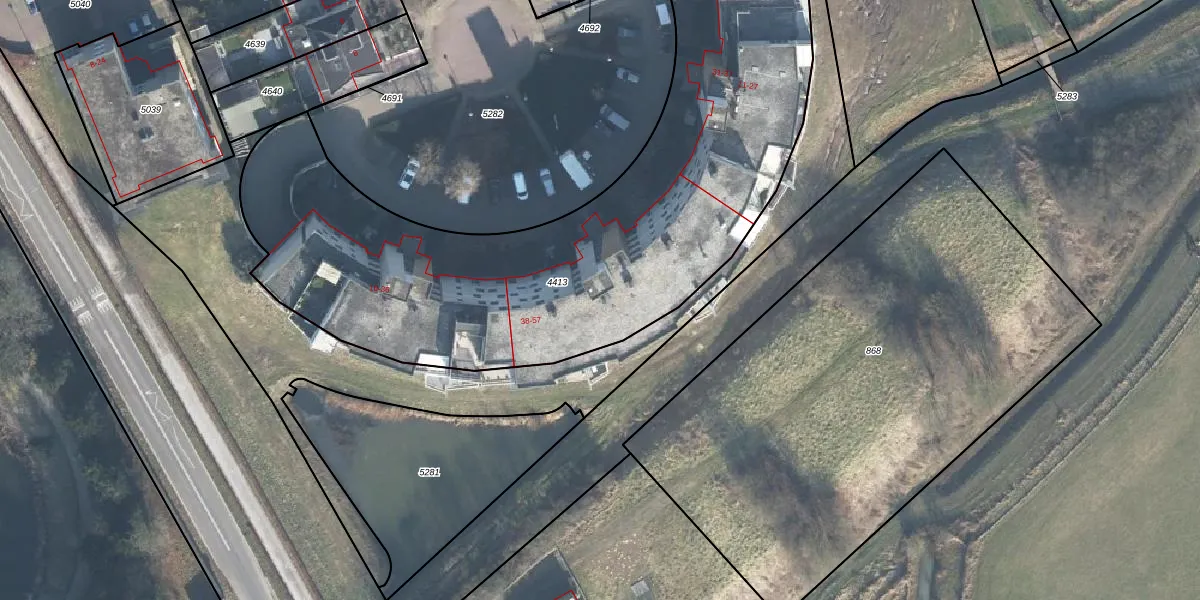 Het perceel waarop Het Bastion 46 staat heeft een oppervlakte van 2890 m². Dit is een zeer groot perceel. De perceeloppervlakte wordt geregistreerd door het Kadaster. Gedetailleerde informatie over de maten van dit perceel kunt u vinden in het rapport Kadastrale kaart met maatvoering van Het Bastion 46.