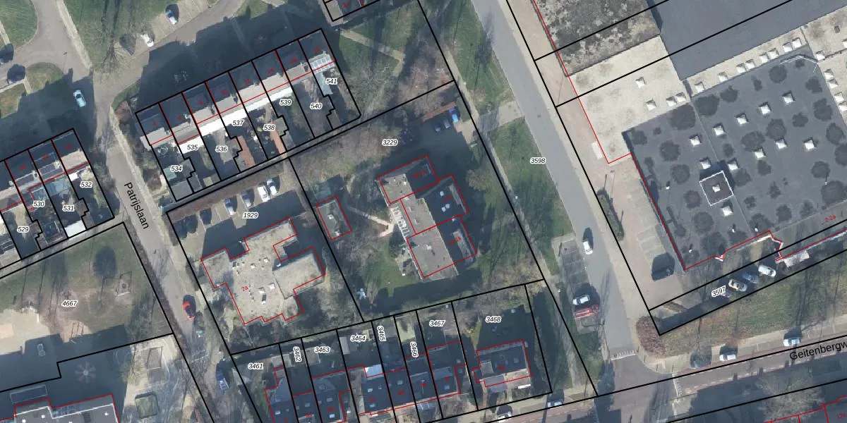 Het perceel waarop Industrielaan 1 staat heeft een oppervlakte van 2015 m². Dit is een zeer groot perceel. De perceeloppervlakte wordt geregistreerd door het Kadaster. Gedetailleerde informatie over de maten van dit perceel kunt u vinden in het rapport Kadastrale kaart met maatvoering van Industrielaan 1.