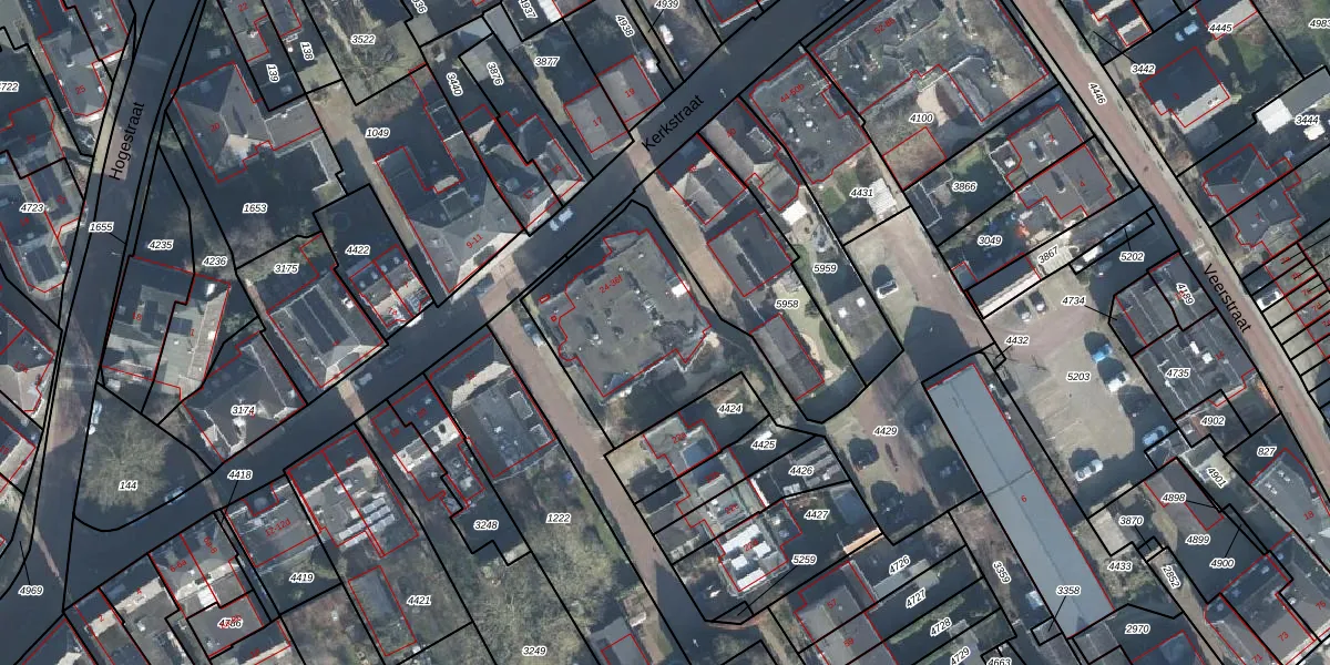 Het perceel waarop Kerkstraat 30 staat heeft een oppervlakte van 1385 m². Dit is een zeer groot perceel. De perceeloppervlakte wordt geregistreerd door het Kadaster. Gedetailleerde informatie over de maten van dit perceel kunt u vinden in het rapport Kadastrale kaart met maatvoering van Kerkstraat 30.