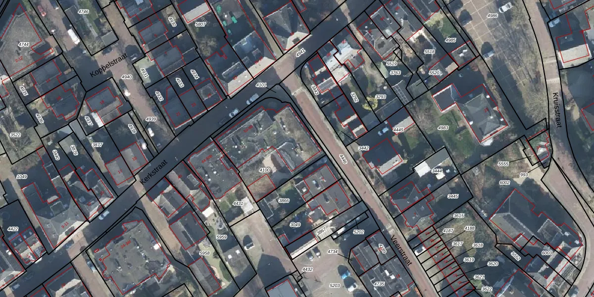 Het perceel waarop Kerkstraat 72 staat heeft een oppervlakte van 725 m². Dit is een groot perceel. De perceeloppervlakte wordt geregistreerd door het Kadaster. Gedetailleerde informatie over de maten van dit perceel kunt u vinden in het rapport Kadastrale kaart met maatvoering van Kerkstraat 72.