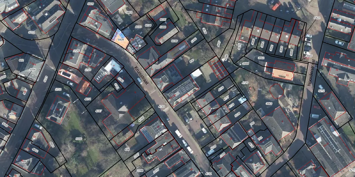 Het perceel waarop Kruisstraat 13-a staat heeft een oppervlakte van 478 m². Dit is een groot perceel. De perceeloppervlakte wordt geregistreerd door het Kadaster. Gedetailleerde informatie over de maten van dit perceel kunt u vinden in het rapport Kadastrale kaart met maatvoering van Kruisstraat 13-a.