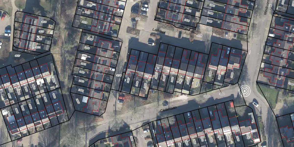 Het perceel waarop Larixhof 19 staat heeft een oppervlakte van 180 m². Dit is een middelgroot perceel. De perceeloppervlakte wordt geregistreerd door het Kadaster. Gedetailleerde informatie over de maten van dit perceel kunt u vinden in het rapport Kadastrale kaart met maatvoering van Larixhof 19.