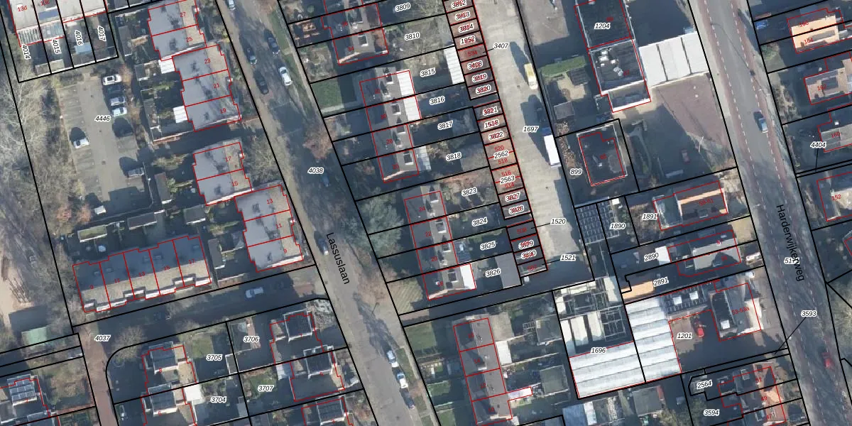 Lassuslaan 24 is gelegen op kadastraal perceel DRN00P3823. Deze kadastrale aanduiding is uniek en wordt gebruikt door het Kadaster om eigendomsrechten en andere zakelijke rechten vast te leggen. Het perceel maakt onderdeel uit van de kadastrale gemeente Dieren.