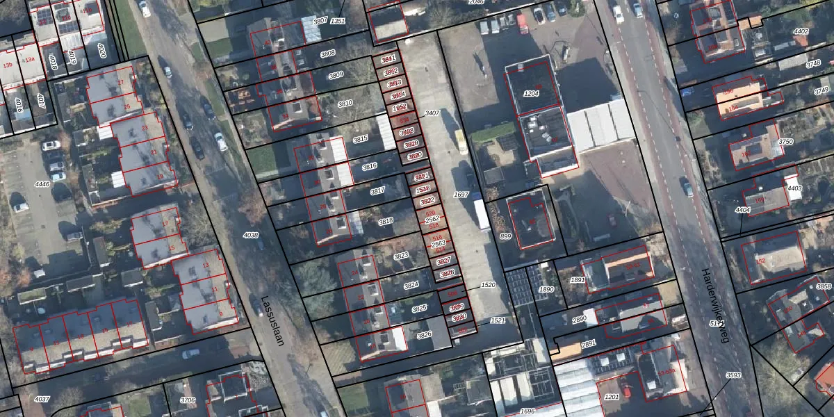 Gebruik de zoekbalk of klik op een perceel voor informatie over de adressen binnen dit perceel.