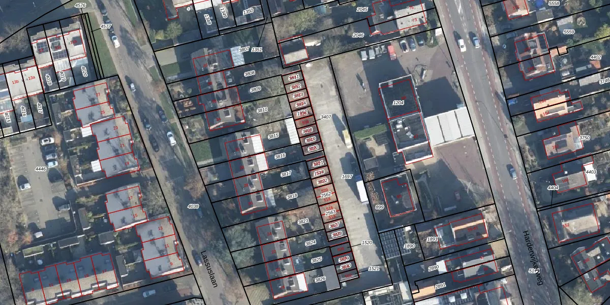 Het perceel waarop Lassuslaan 528 staat heeft een oppervlakte van 20 m². Dit is een klein perceel. De perceeloppervlakte wordt geregistreerd door het Kadaster. Gedetailleerde informatie over de maten van dit perceel kunt u vinden in het rapport Kadastrale kaart met maatvoering van Lassuslaan 528.