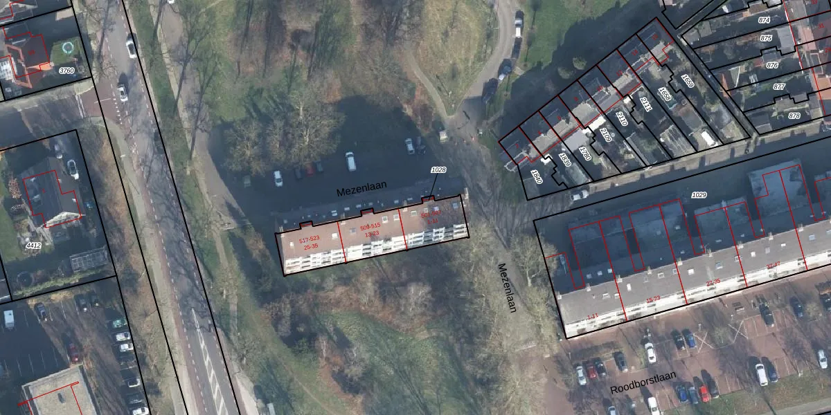 Mezenlaan 505 is gelegen op kadastraal perceel DRN00P1028. Deze kadastrale aanduiding is uniek en wordt gebruikt door het Kadaster om eigendomsrechten en andere zakelijke rechten vast te leggen. Het perceel maakt onderdeel uit van de kadastrale gemeente Dieren.