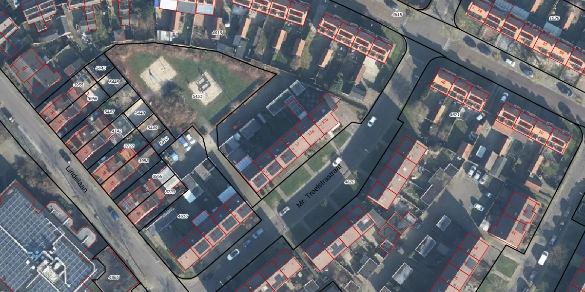 Mr. Troelstrastraat 17 is gelegen op kadastraal perceel DRN00U4615. Deze kadastrale aanduiding is uniek en wordt gebruikt door het Kadaster om eigendomsrechten en andere zakelijke rechten vast te leggen. Het perceel maakt onderdeel uit van de kadastrale gemeente Dieren.