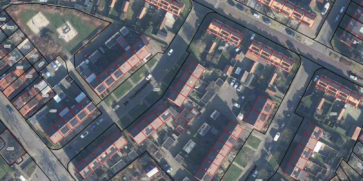 Het perceel waarop Mr. Troelstrastraat 22 staat heeft een oppervlakte van 6515 m². Dit is een zeer groot perceel. De perceeloppervlakte wordt geregistreerd door het Kadaster. Gedetailleerde informatie over de maten van dit perceel kunt u vinden in het rapport Kadastrale kaart met maatvoering van Mr. Troelstrastraat 22.