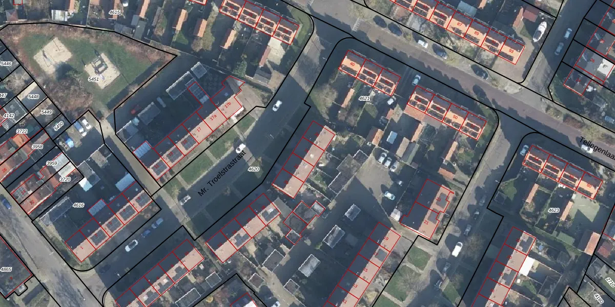 Mr. Troelstrastraat 24 is gelegen op kadastraal perceel DRN00U4621. Deze kadastrale aanduiding is uniek en wordt gebruikt door het Kadaster om eigendomsrechten en andere zakelijke rechten vast te leggen. Het perceel maakt onderdeel uit van de kadastrale gemeente Dieren.
