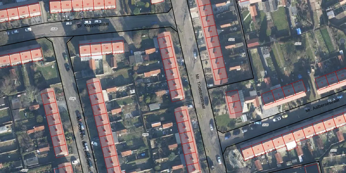 Mr. Troelstrastraat 49 is gelegen op kadastraal perceel DRN00U5440. Deze kadastrale aanduiding is uniek en wordt gebruikt door het Kadaster om eigendomsrechten en andere zakelijke rechten vast te leggen. Het perceel maakt onderdeel uit van de kadastrale gemeente Dieren.