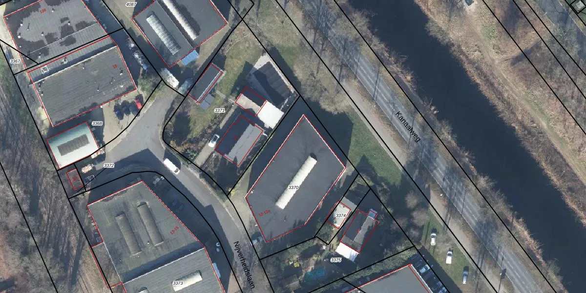 Het perceel waarop Nijverheidslaan 12 staat heeft een oppervlakte van 1377 m². Dit is een zeer groot perceel. De perceeloppervlakte wordt geregistreerd door het Kadaster. Gedetailleerde informatie over de maten van dit perceel kunt u vinden in het rapport Kadastrale kaart met maatvoering van Nijverheidslaan 12.
