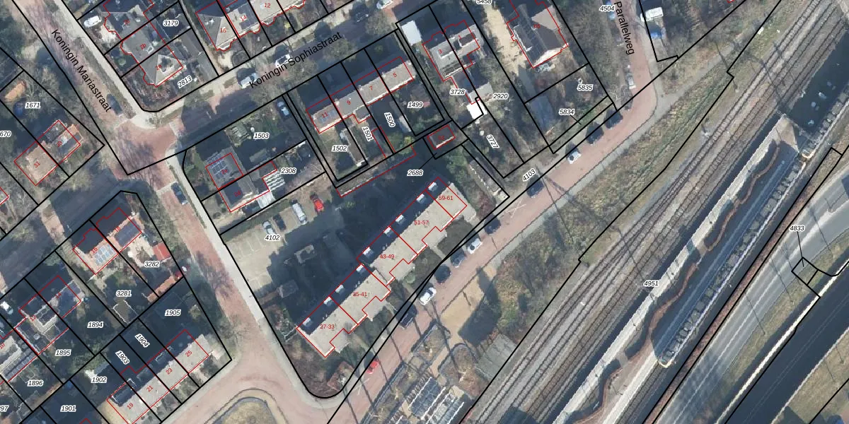Het perceel waarop Noorder Parallelweg 57 staat heeft een oppervlakte van 2075 m². Dit is een zeer groot perceel. De perceeloppervlakte wordt geregistreerd door het Kadaster. Gedetailleerde informatie over de maten van dit perceel kunt u vinden in het rapport Kadastrale kaart met maatvoering van Noorder Parallelweg 57.