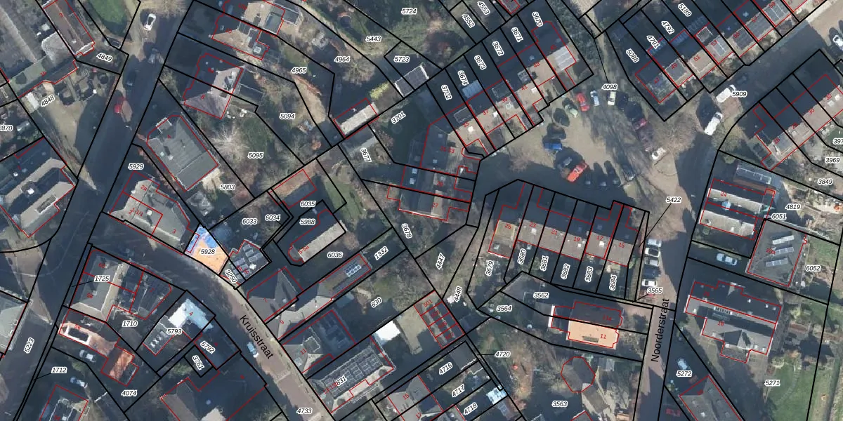 Gebruik de zoekbalk of klik op een perceel voor informatie over de adressen binnen dit perceel.