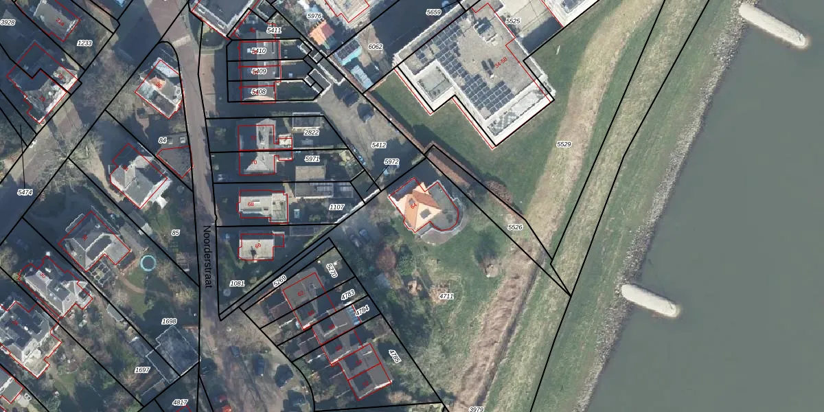 Het perceel waarop Noorderstraat 64 staat heeft een oppervlakte van 2305 m². Dit is een zeer groot perceel. De perceeloppervlakte wordt geregistreerd door het Kadaster. Gedetailleerde informatie over de maten van dit perceel kunt u vinden in het rapport Kadastrale kaart met maatvoering van Noorderstraat 64.