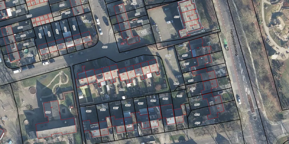 Het perceel waarop het adres ligt is DRN00-U-4689. De afkorting 'DRN00' staat voor kadastrale gemeente Dieren. Het perceel is 1790 m² groot. Dat is kleiner dan de gemiddelde perceeloppervlakte in Dieren, dat op 5741,08 m² ligt. De grootste perceeloppervlakte in de kadastrale gemeente is 2,97 km². De kleinste oppervlakte bedraagt 0 m². Op het perceel zijn 12 adressen aanwezig. In de Basisregistratie Kadaster (BRK) werden de grenzen van het perceel geregistreerd op 19-04-2001.