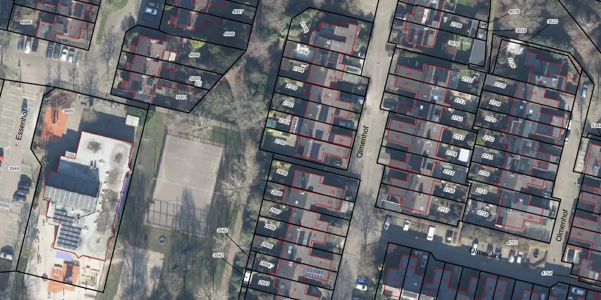 Gebruik de zoekbalk of klik op een perceel voor informatie over de adressen binnen dit perceel.
