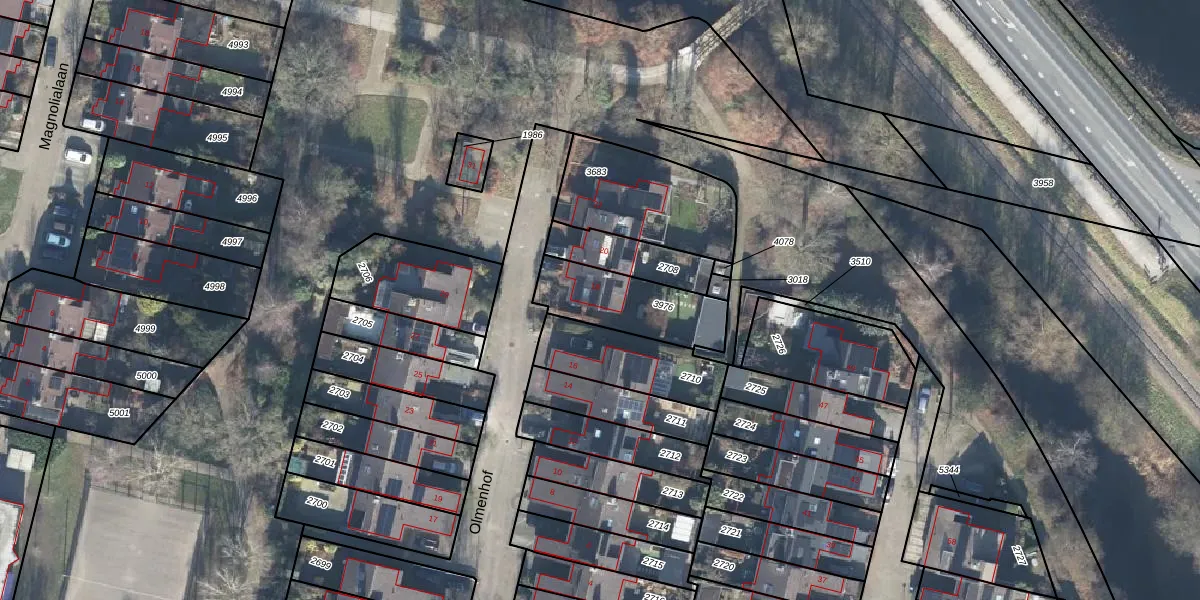 Het perceel waarop Olmenhof 18 staat heeft een oppervlakte van 293 m². Dit is een middelgroot perceel. De perceeloppervlakte wordt geregistreerd door het Kadaster. Gedetailleerde informatie over de maten van dit perceel kunt u vinden in het rapport Kadastrale kaart met maatvoering van Olmenhof 18.