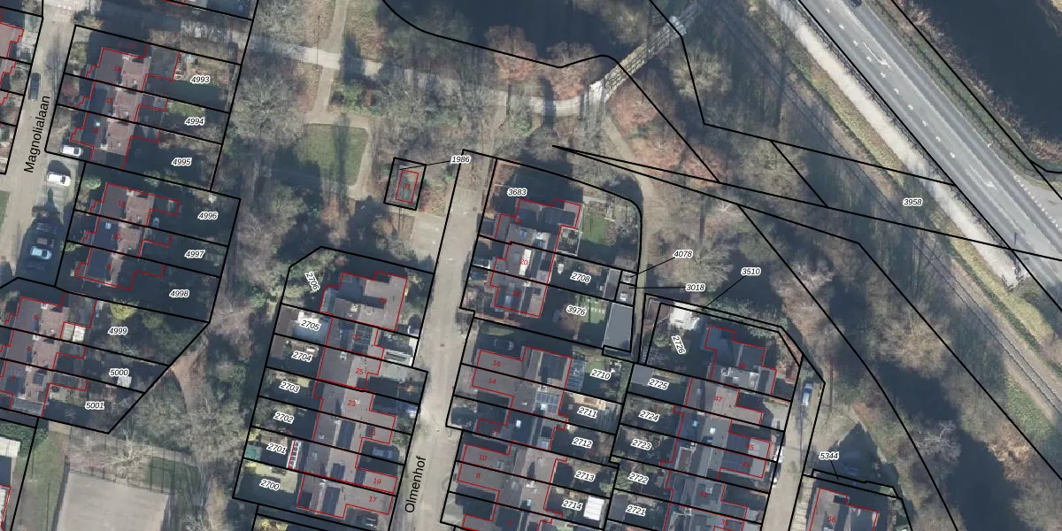 Gebruik de zoekbalk of klik op een perceel voor informatie over de adressen binnen dit perceel.