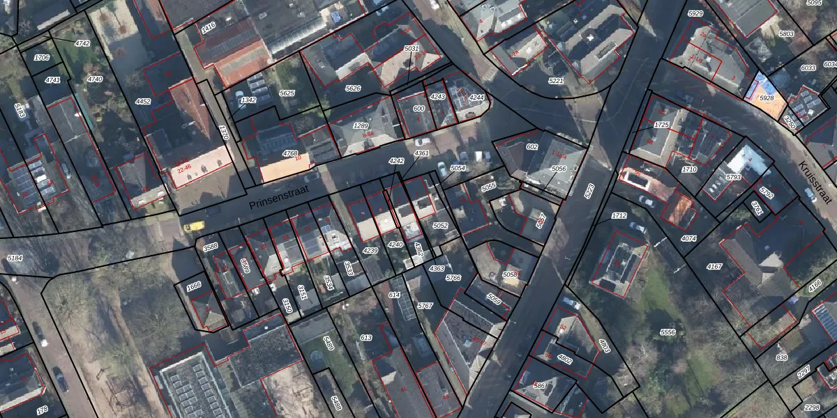 Het perceel waarop Prinsenstraat 1 staat heeft een oppervlakte van 125 m². Dit is een middelgroot perceel. De perceeloppervlakte wordt geregistreerd door het Kadaster. Gedetailleerde informatie over de maten van dit perceel kunt u vinden in het rapport Kadastrale kaart met maatvoering van Prinsenstraat 1.