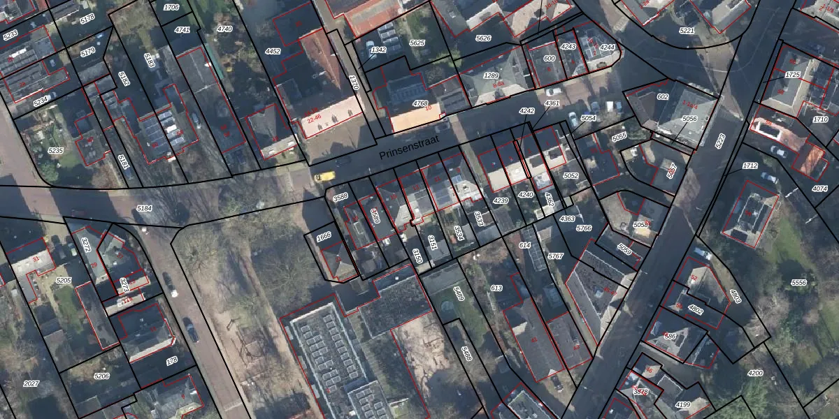 Het perceel waarop Prinsenstraat 13 staat heeft een oppervlakte van 147 m². Dit is een middelgroot perceel. De perceeloppervlakte wordt geregistreerd door het Kadaster. Gedetailleerde informatie over de maten van dit perceel kunt u vinden in het rapport Kadastrale kaart met maatvoering van Prinsenstraat 13.