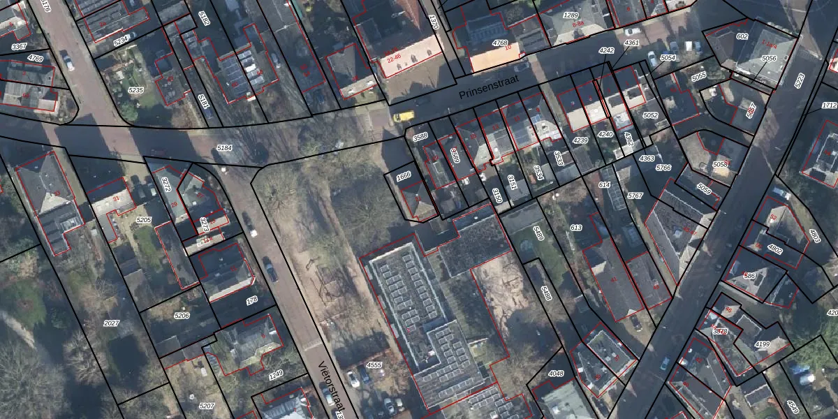 Het perceel waarop Prinsenstraat 21 staat heeft een oppervlakte van 107 m². Dit is een middelgroot perceel. De perceeloppervlakte wordt geregistreerd door het Kadaster. Gedetailleerde informatie over de maten van dit perceel kunt u vinden in het rapport Kadastrale kaart met maatvoering van Prinsenstraat 21.