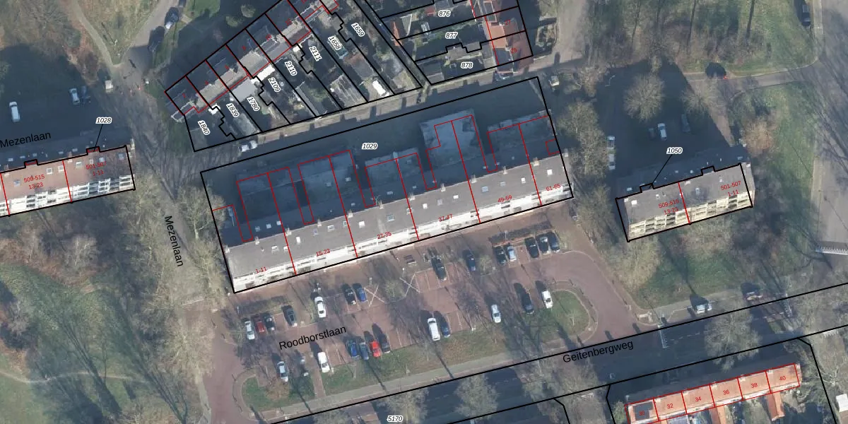 Het perceel waarop Roodborstlaan 39 staat heeft een oppervlakte van 2443 m². Dit is een zeer groot perceel. De perceeloppervlakte wordt geregistreerd door het Kadaster. Gedetailleerde informatie over de maten van dit perceel kunt u vinden in het rapport Kadastrale kaart met maatvoering van Roodborstlaan 39.