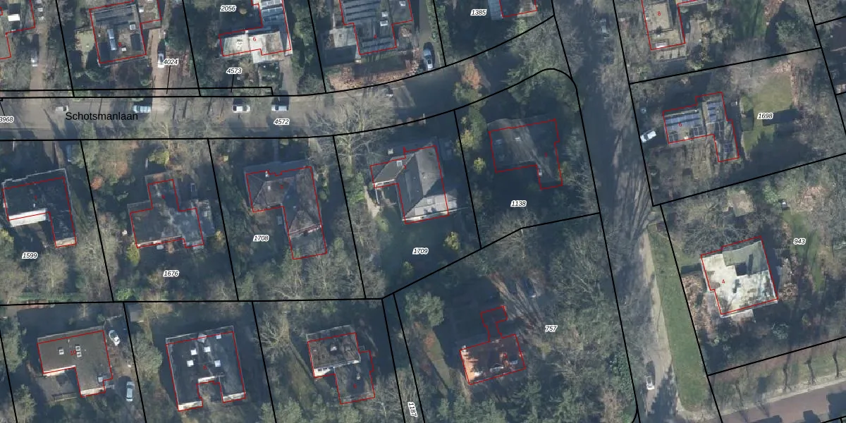 Het perceel waarop Schotsmanlaan 1 staat heeft een oppervlakte van 1078 m². Dit is een zeer groot perceel. De perceeloppervlakte wordt geregistreerd door het Kadaster. Gedetailleerde informatie over de maten van dit perceel kunt u vinden in het rapport Kadastrale kaart met maatvoering van Schotsmanlaan 1.