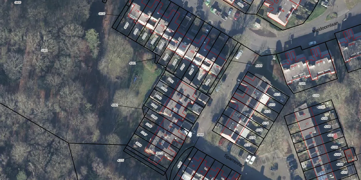 Het perceel waarop Sparrenhof 2 staat heeft een oppervlakte van 201 m². Dit is een middelgroot perceel. De perceeloppervlakte wordt geregistreerd door het Kadaster. Gedetailleerde informatie over de maten van dit perceel kunt u vinden in het rapport Kadastrale kaart met maatvoering van Sparrenhof 2.