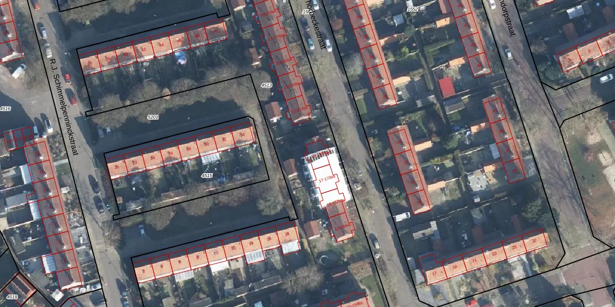 Het perceel waarop Thorbeckestraat 19-bis staat heeft een oppervlakte van 8880 m². Dit is een zeer groot perceel. De perceeloppervlakte wordt geregistreerd door het Kadaster. Gedetailleerde informatie over de maten van dit perceel kunt u vinden in het rapport Kadastrale kaart met maatvoering van Thorbeckestraat 19-bis.