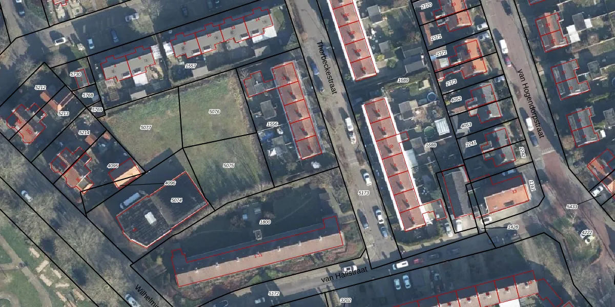 Het perceel waarop Thorbeckestraat 3 staat heeft een oppervlakte van 900 m². Dit is een groot perceel. De perceeloppervlakte wordt geregistreerd door het Kadaster. Gedetailleerde informatie over de maten van dit perceel kunt u vinden in het rapport Kadastrale kaart met maatvoering van Thorbeckestraat 3.