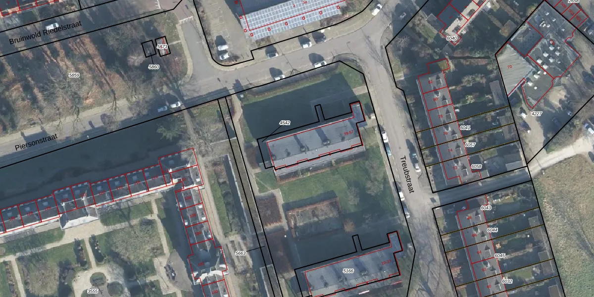 Het perceel waarop Treubstraat 55 staat heeft een oppervlakte van 415 m². Dit is een groot perceel. De perceeloppervlakte wordt geregistreerd door het Kadaster. Gedetailleerde informatie over de maten van dit perceel kunt u vinden in het rapport Kadastrale kaart met maatvoering van Treubstraat 55.