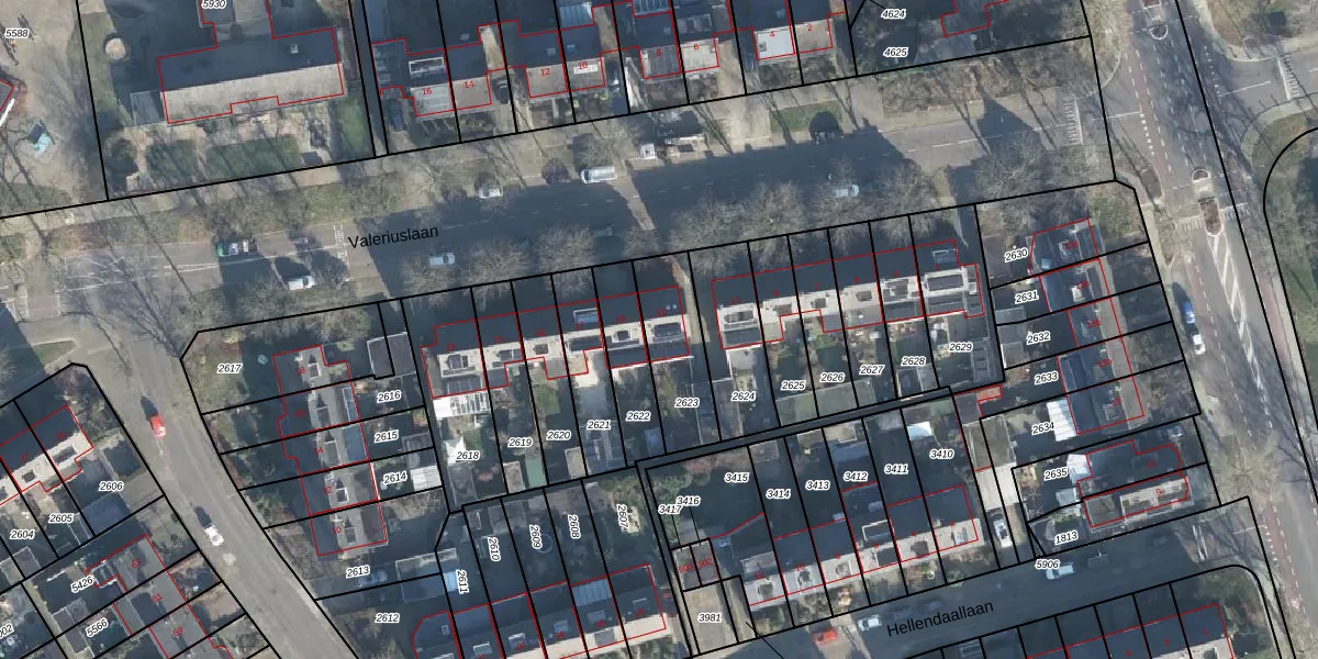 Gebruik de zoekbalk of klik op een perceel voor informatie over de adressen binnen dit perceel.