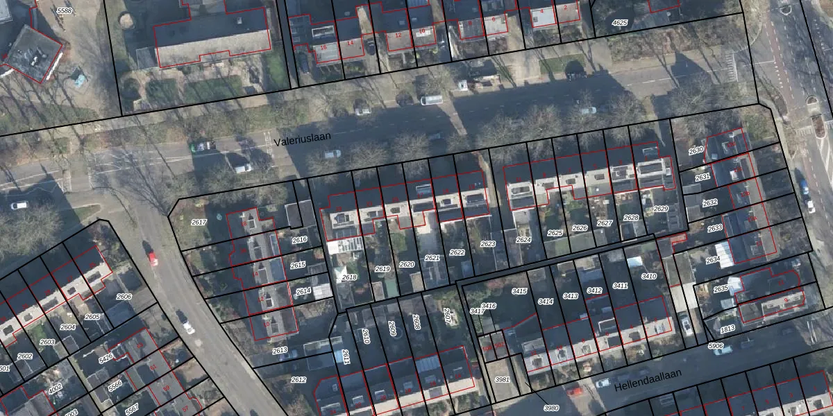 Gebruik de zoekbalk of klik op een perceel voor informatie over de adressen binnen dit perceel.