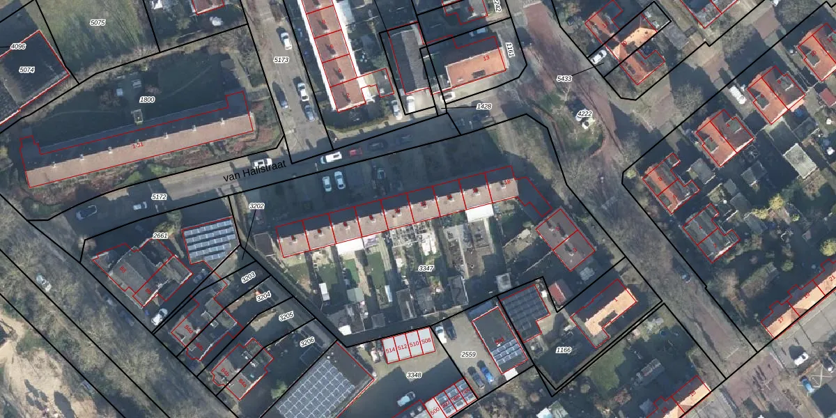 Het perceel waarop van Hallstraat 12 staat heeft een oppervlakte van 3117 m². Dit is een zeer groot perceel. De perceeloppervlakte wordt geregistreerd door het Kadaster. Gedetailleerde informatie over de maten van dit perceel kunt u vinden in het rapport Kadastrale kaart met maatvoering van van Hallstraat 12.