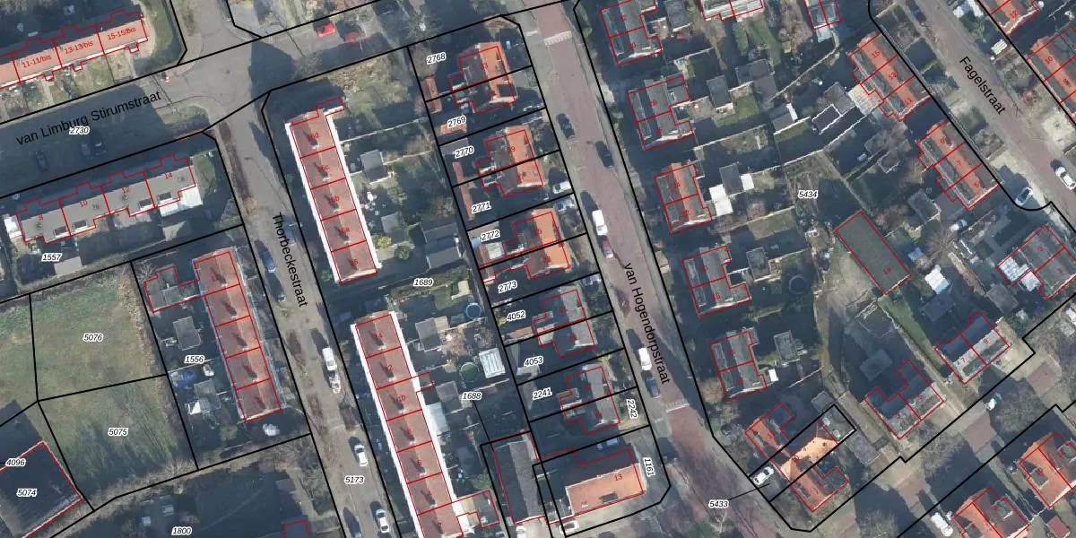 Gebruik de zoekbalk of klik op een perceel voor informatie over de adressen binnen dit perceel.